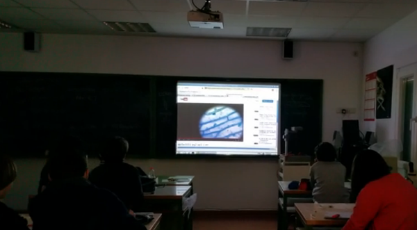 O esta otra prueba en el laboratorio de Ciencias, viendo y escuchando un vídeo con la Raspberry Pi 2 a través de los altavoces del laboratorio: